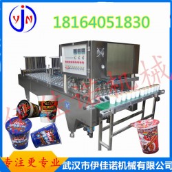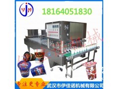 紙碗裝方便粉絲麻辣燙自動封口機方便面包裝機伊佳諾全自動封口機,采用不銹鋼機身,下杯、放蓋、封口均一次完成,嚴格符合食品衛生的要求。該機主要用杯、盒、碗裝、方便面、藕粉、米線便等食品封口,也可以用于其它異型裝的封口。自動下杯,自動放膜,自動封口、自動出杯;采用凸輪分度器,使下膜定位精確,機器運轉平穩;吸膜與封口同時完成,下膜移動對蓋膜定位精度無影響;準確的二次封口、封口壓力可調整,封口強度好;操作簡便、安全。方便面的工作流程:自動放碗、手工放面及佐料、自動放蓋、自動封口、自動出碗。