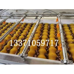 根莖類清洗機脫水部分:切分的蔬菜經(jīng)保鮮處理后,其內外夾雜有許多水分,需要進行適當?shù)募庸ひ匀サ羲帧?捎美滹L干燥機或離心機脫水。通常選用離心機進行脫水。離心機脫水時間要適宜,如果脫水過分,產(chǎn)品容易干燥枯萎,反而使品質下降商用果蔬清洗線功能。