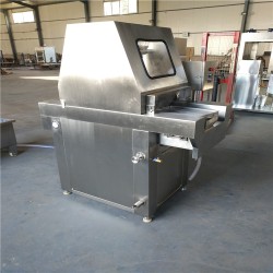 主要應用于各種肉制品的快速入味,通過針注射到肉內,達到快速入味的一款設備。使肉質嫩化、松軟、不僅縮短了腌漬時間,而且大大提高了肉制品的口味及出品率。鹽水注射機采用齒形步進送料,步距準確,肉料由三組可拆卸的格條支撐,注射針采用彈簧控制,生產120針鹽水注射機,真正能夠達到帶骨注射。注射壓力、注射率、步進距離和速度,可根據注射物料大小以及被注射物的組織結構。