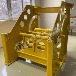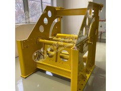 當帶式輸送機正常工作時,上抓捕架由支撐托輥在膠帶的張力作用下與承載帶下底面(槽型弧底)接觸,下抓捕架由托輥與下膠帶接觸。當帶式輸送機發生斷帶事故時,膠帶下滑,膠帶張力驟降,抓捕器的上下托輥失去支撐力。上抓捕架在配重箱的作用下與橫梁配合將下滑的承載膠帶抓住,下抓捕架由在自身重力作用下與下橫梁配合將回空膠帶抓住,保護輸送機。在上下抓捕架實施抓捕動作的同時,觸發信號裝置,信號裝置與帶式輸送機主控間通信發出斷帶事故信號,促使主控發出停車命令,保護輸送機,從而避免因斷帶發生重大安全事故。