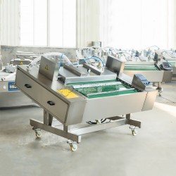 鴨腸真空包裝機 叫花雞真空封口機 雞爪真空機 單個工作室的 封口長度為400mm。工作效率是單室真空包裝機的1.5倍該真空包裝機為凹槽型,另外有平板型可供選擇。